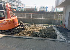 解体後、鉄骨やパレットを取れば後はほぼ石や砂利を使い、とにかく埋めます。アスファルト舗装にて埋め戻します。